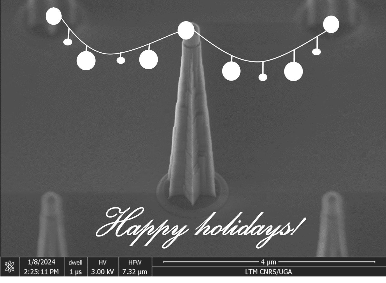 Lignes Carrousel Previous Stop Next 1 / 6 Lab Overview Read more Previous Stop Next 2 / 6 News Read more Previous Stop Next 3 / 6 Research Read more Previous Stop Next 4 / 6 PlatForms & Resources Read more Previous Stop Next 5 / 6 Partnership & Innovation Read more Previous Stop Next 6 / 6 Join Us Read more Coming soon! 16 DEC Conference Symposium for sustainable electronics And digital 2 On December 16, 2025 Grenoble - Presqu'île 30 OCT Conference, Workshop Workshop on Sustainable-by-design Wireless Technologies From October 30, 2025 to October 31, 2025 Valence 15 SEP Conference 51st International Micro and Nano Engineering Conference (MNE) From September 15, 2025 to September 18, 2025 07 JUL Conference Advanced Epitaxy for Freestanding Membranes and 2D Materials (AEFM) From July 7, 2025 to July 9, 2025 Grenoble - Presqu'île Focus On... #nnt2025 Read more #PDS2025 Read more More focus Last Publications Read more Picture of the month Micro pine tree (AlN pillar decorated with a SiO2 hard mask). December 2025.